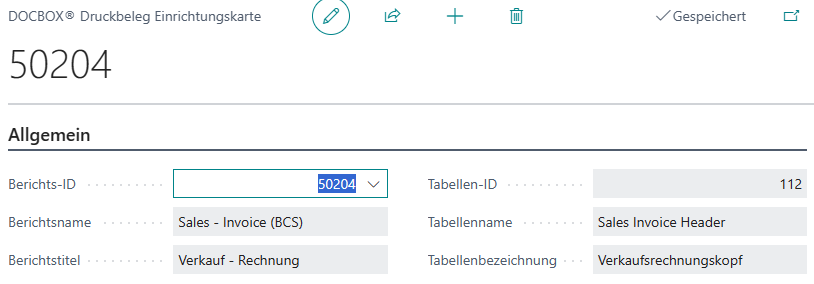 Zeigt ID der zugrundeliegende Datentabelle in Business Central an.